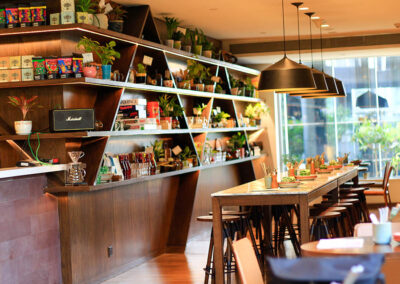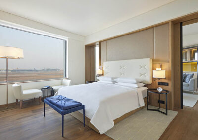 The Andaz hotel offers 401 residential-style guestrooms including 45 suites, with views of the runway and courtyard. In each of the guestrooms, is a book celebrating ‘401 Reasons to fall in love with Delhi’ with an art piece depicting your room’s reason in focus.
