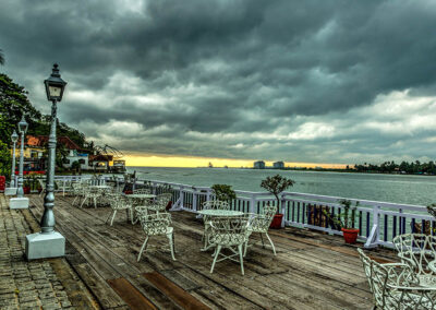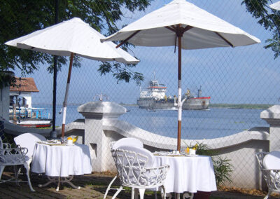 Most bedrooms (26 in total) have a harbour view and are furnished in traditional Kerala style. They also offer suites. The spacious bathrooms have a bath and shower cubicle. The swimming pool is a good size overlooking the harbour. The main restaurant offers cuisine reflecting the cultural influences of Cochin and there is also a terrace grill. Brunton Boatyard is part of the CGH Earth Group and has strong environmental credentials
