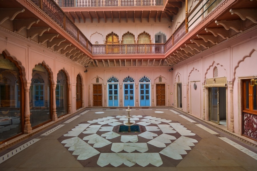 Haveli Dharampura is a 13 room heritage hotel built in 1887 and was originally designed for both residential and commercial purposes and retains many authentic features. It took six years to restore the old haveli into a stunning hotel. It is located in Old Delhi, close to the Jama Masjid.