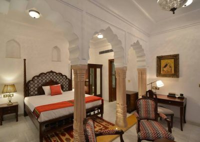 The 14 rooms at Haveli Dharampura come in three categories – Jharoka Rooms, Diwan-E-Khas Rooms and the Shahjahan Suites. There are many places to sit and enjoy the property, and on the rooftop watch the sun set over Old Delhi or witness the local residents flying their pigeons. Access to the property is via a narrow alley and you walk passed tradesman working. The haveli really is an oasis of calm amidst an exciting but intense part of Delhi.