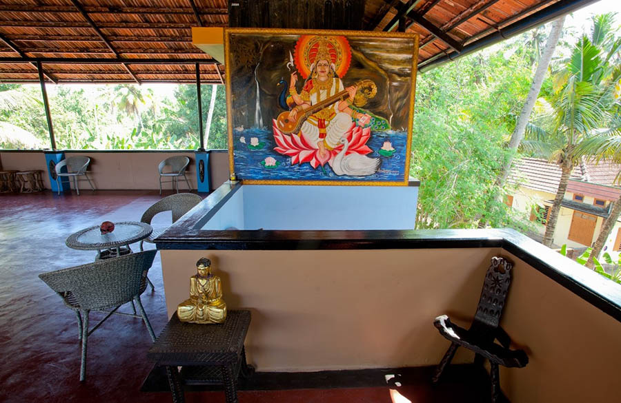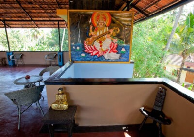 Kaiya House is a five bedroom property located a ten minute walk from Varkala’s cliff. Each room has its own theme, depicting a certain country through its pictures and artefacts (India, England, China, Africa and Japan).