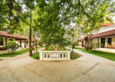 There are 28 rooms, most are Mantra Cottages but they also have some larger rooms for families. It is in set in a rural area on the banks of a river and surrounded by trees – perfect for people who like to avoid the busy cities. It is in the Tanjore District and there are a number of temples (including Tanjore, Darasuram, Chidambaram and Gangaikondacholapuram) that may be visited from here. You can also get to the coast in just over an hour.