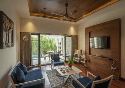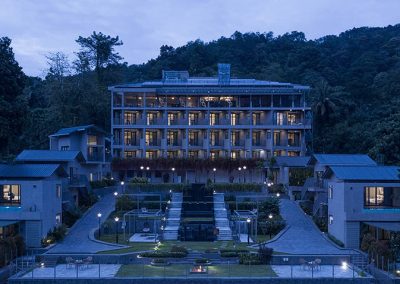 Niraamaya Retreats Samroha is a strikingly beautiful palatial building with a balanced combination of old-world charm with contemporary luxury. The architecture is modern with natural lighting and meditative spaces. Relax and listen to the gushing river and the majestic waterfalls as you embrace the feeling of oneness with nature.