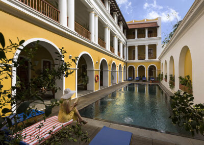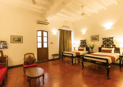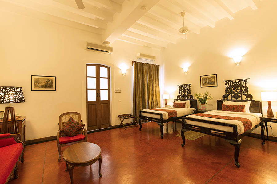 The guest rooms (18) are spacious and full of character with furnishings inspired by history. Few hotels in the centre of Pondicherry have a swimming pool – but the Palais de Mahe has – a delightful courtyard pool.