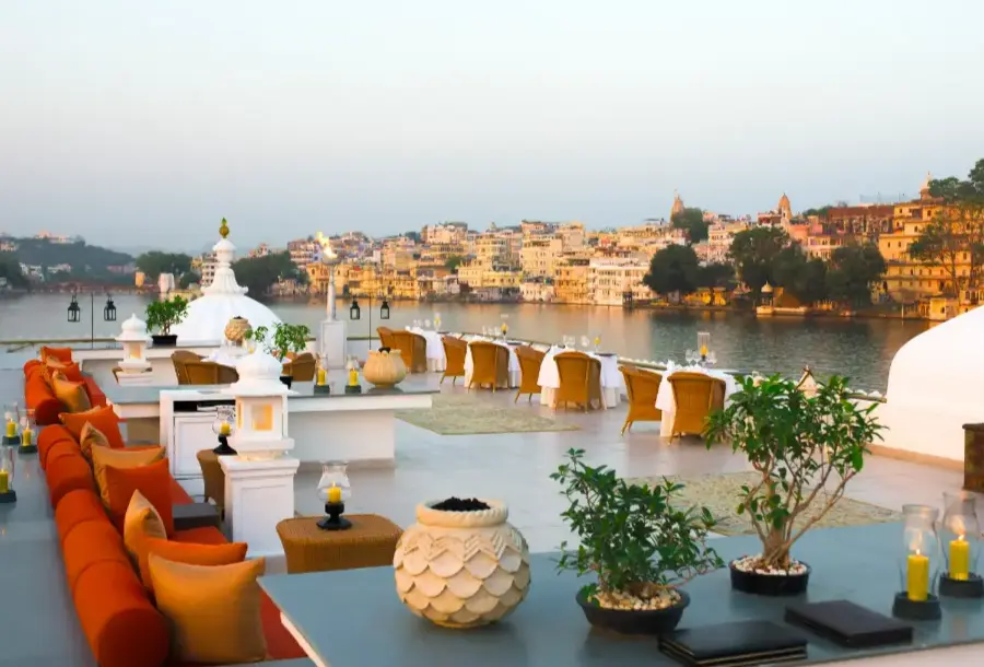 Taj Lake Palace rises like a vision of white marble from the tranquil waters of Lake Pichola, offering an unforgettable blend of romance, history, and architectural splendour. Originally built as a royal summer palace, this iconic property showcases intricate craftsmanship, graceful domes, and ornate detailing that reflect the grandeur of Rajasthan’s regal past. Surrounded by shimmering water and framed by the Aravalli hills and the city of Udaipur, the palace creates a magical setting that feels both secluded and enchanting.