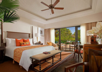 The St. Regis Goa Resort’s lobby is very impressive and the standard rooms all have a lagoon view and are extremely comfortable and well equipped. The club rooms are considerably larger and very stylish. Staying in a club room allows you additional facilities including a separate swimming pool for use only by club guests.