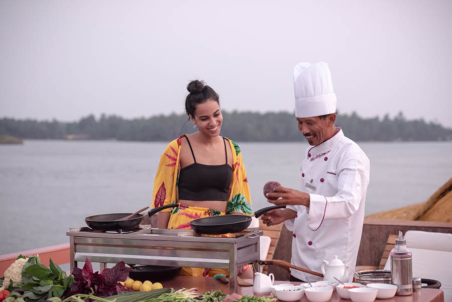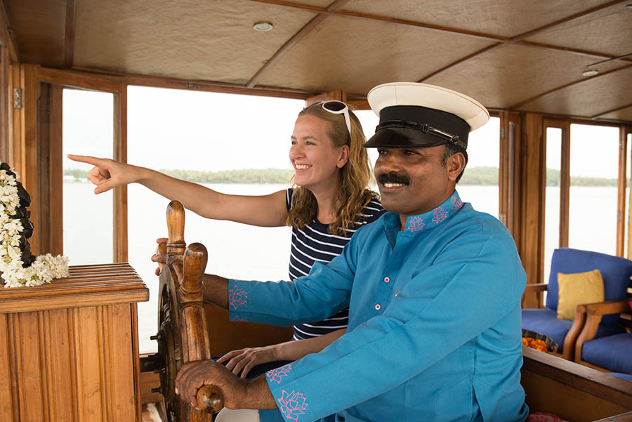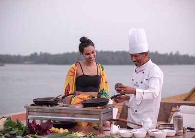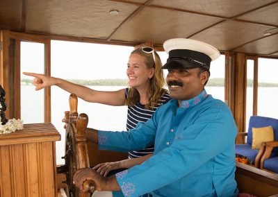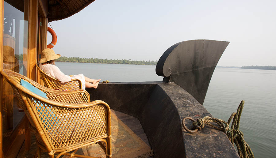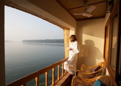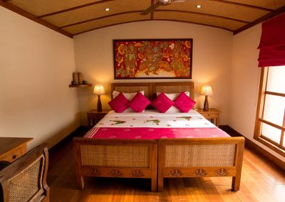 The owners of Neeleshwar Hermitage in North Kerala had the brilliant idea of building their own rice barge and putting it one the nearby waterways. The Malabar backwaters are very quiet – reminiscent of the Alleppey backwaters 15 years ago. The Lotus is a state of the art boat with a style similar to Neeleshwar Hermitage. It is light and spacious with clean lines and lots of teak and bright colours. The boat is staffed and managed by the Neeleshwar team so you can expect the same level of service and same quality of food.