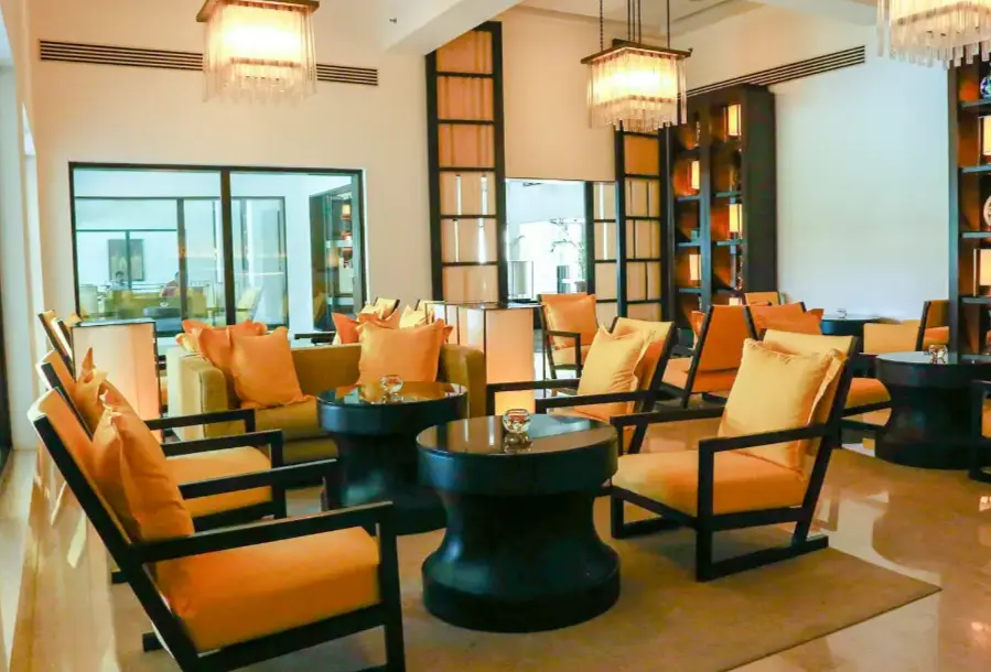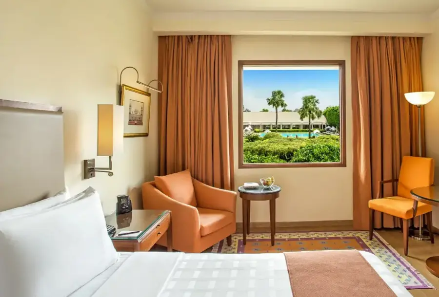 Trident Agra is a 5-star hotel close to the Taj Mahal, featuring stunning gardens, water fountains, dining options, and great hospitality.
