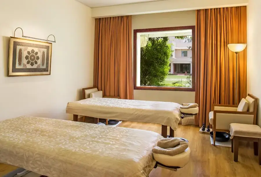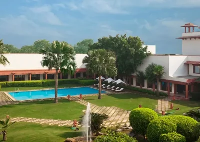 The 135 guest rooms have plush beds, tasteful decorations and are arranged around a central garden, with manicured lawns, trimmed hedges, and a swimming pool. All rooms are equipped with air-conditioning, television, Wi-Fi and a minibar. The restaurant offers evening buffet and a la carte options. As well as classic Rajasthani curries, there are south Indian uttapam, idlis and dosas for breakfast, proper Hyderabadi clay-pot biryanis, and an extensive Italian menu.